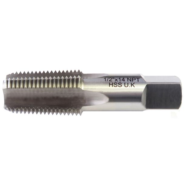 M2 High Speed Steel Precision ground thread ANSI B94.9 Parallel shank with square Straight Flute Right hand threading Full form with Taper, Second, or Bottoming lead for American Taper Pipe threads Usually supplied in bright ground finish Tap basic dimensions shown in mm May be used by hand or in machines to produce accurate threads in most materials